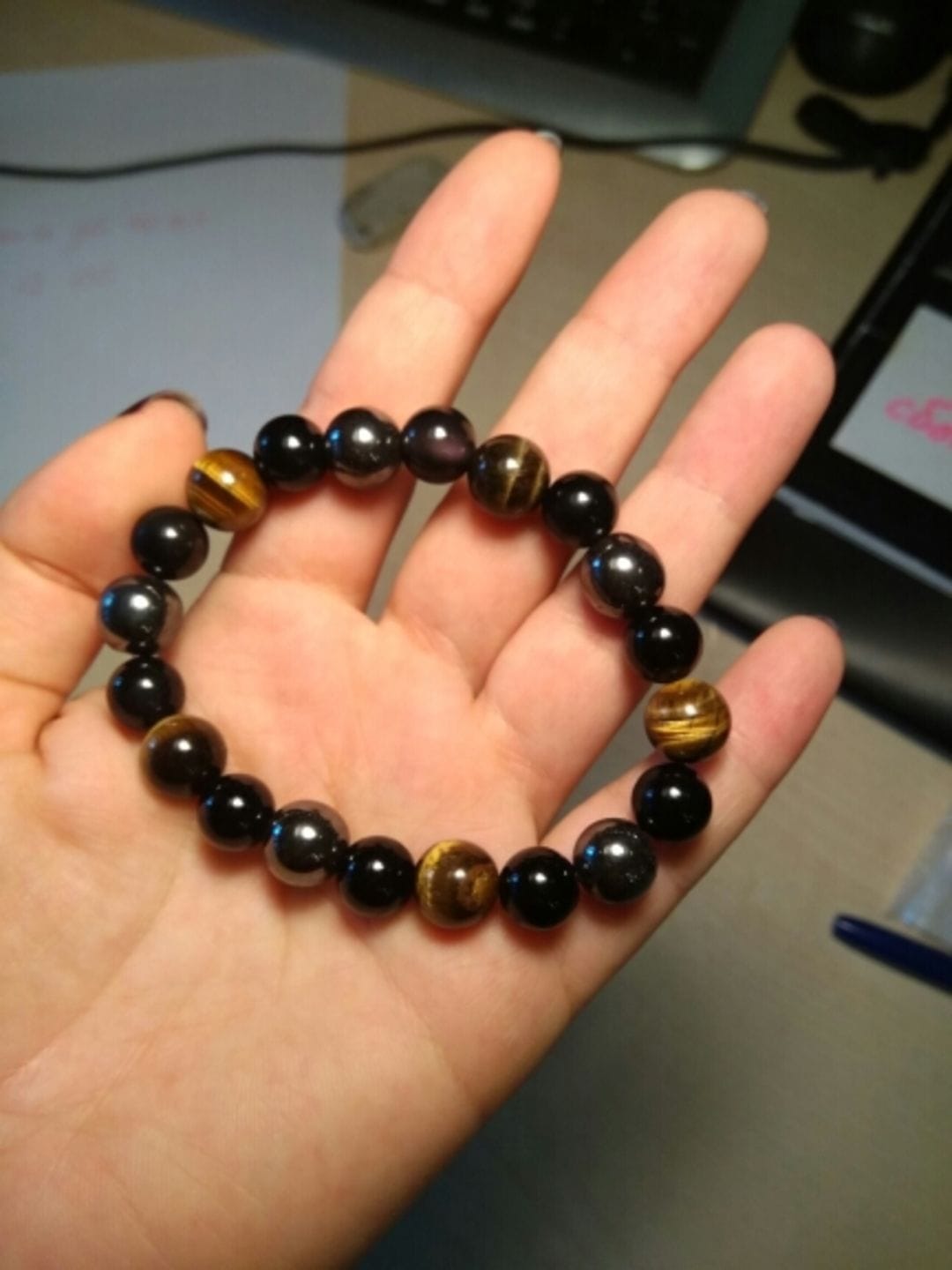 Прекрасна изработка, определено на живо е много по-красива! Запозната съм със свойствата на енергийните камъни и мога да кажа, че наистина си личи вниманието с което са подбрани камъните за тази гривна. Оникса е рожденния ми камък и съм сигурна, че в комбинация с останалите ще ме пазят и закрилят от лошите очи и завистта около мен!